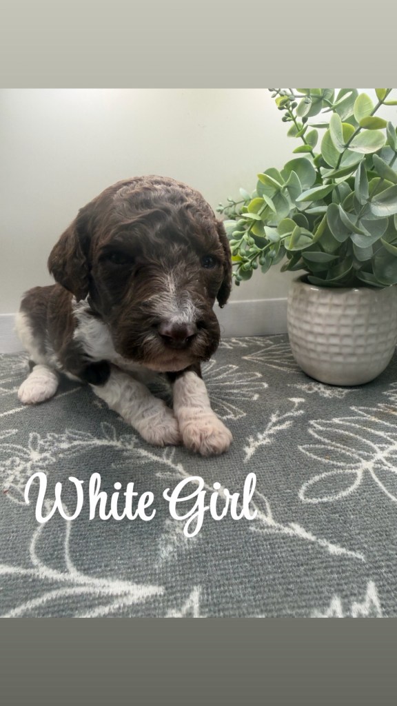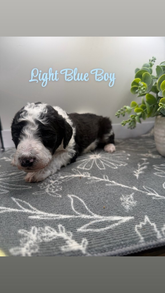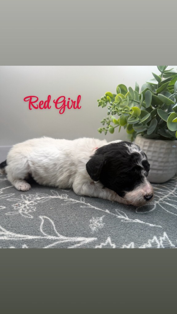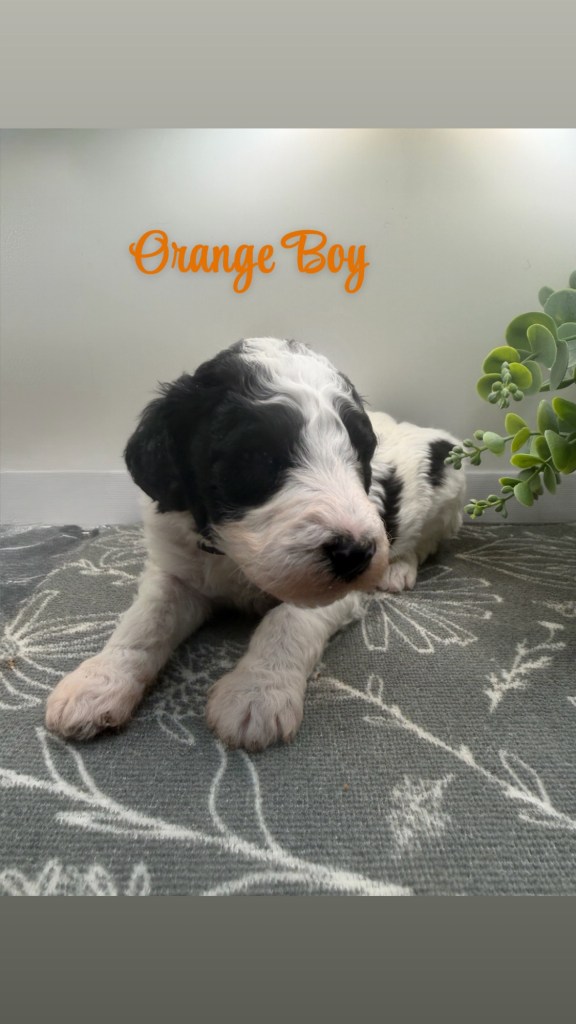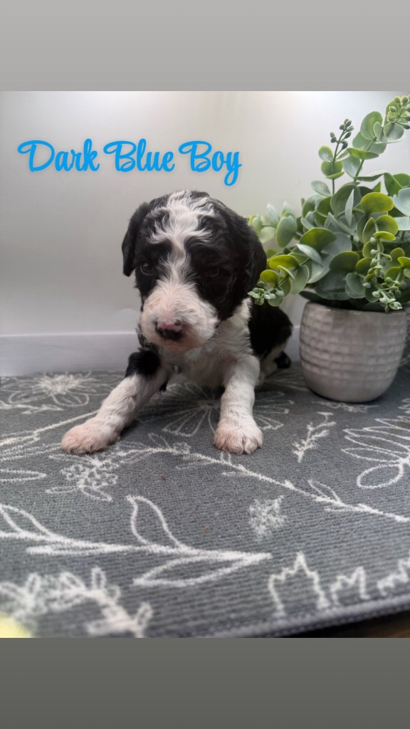 We are now taking deposits. These pups are black/white and brown/white parti color. Please summit an application.