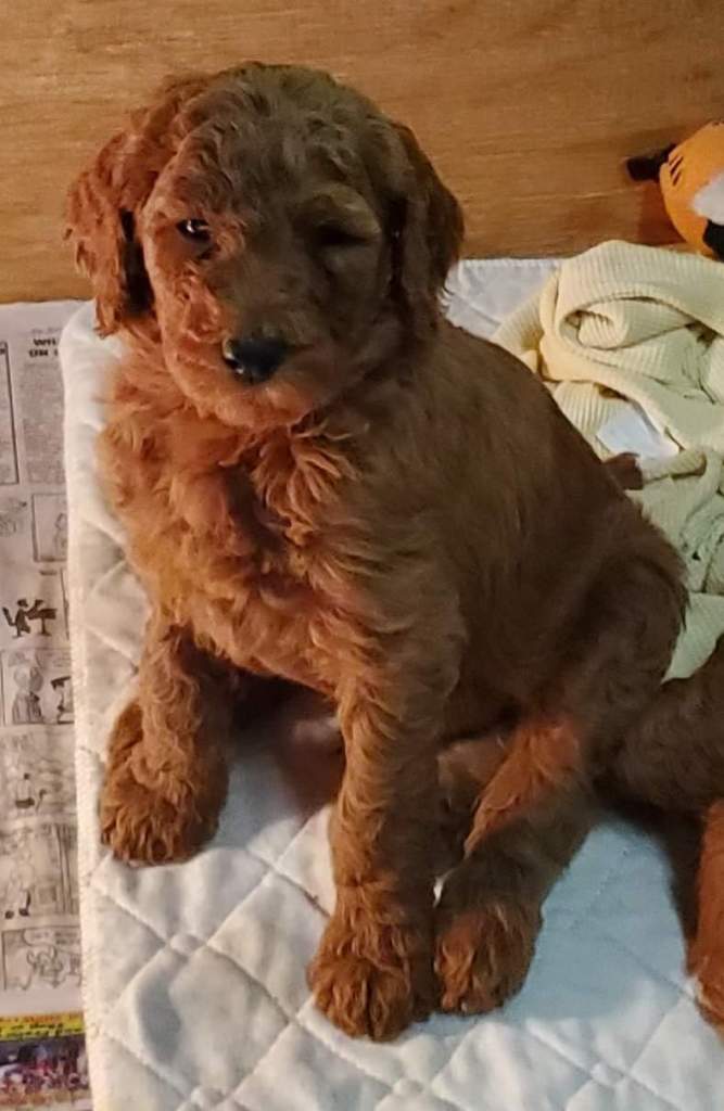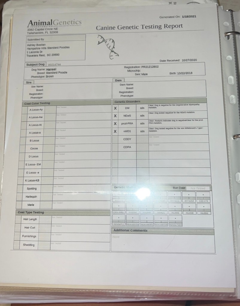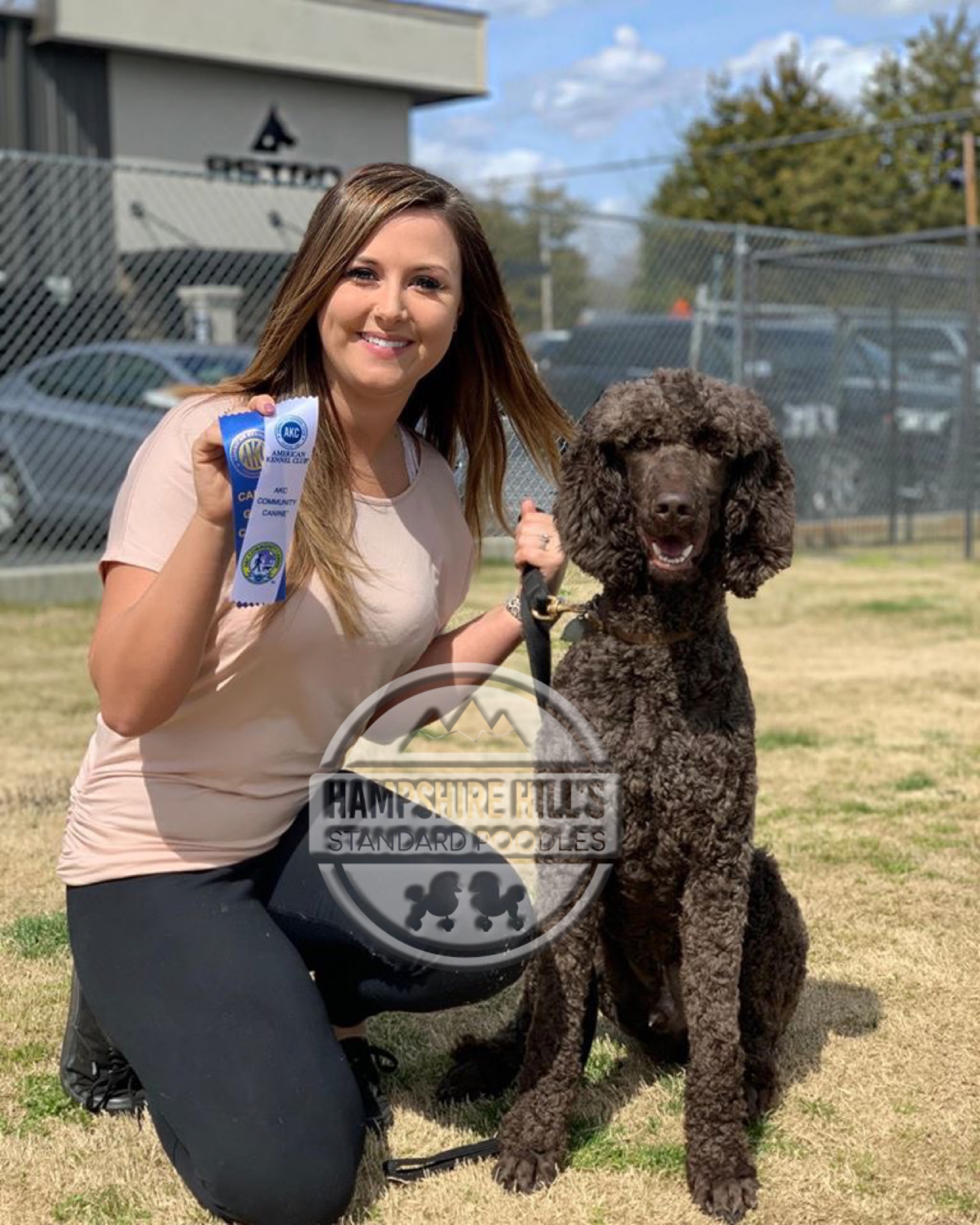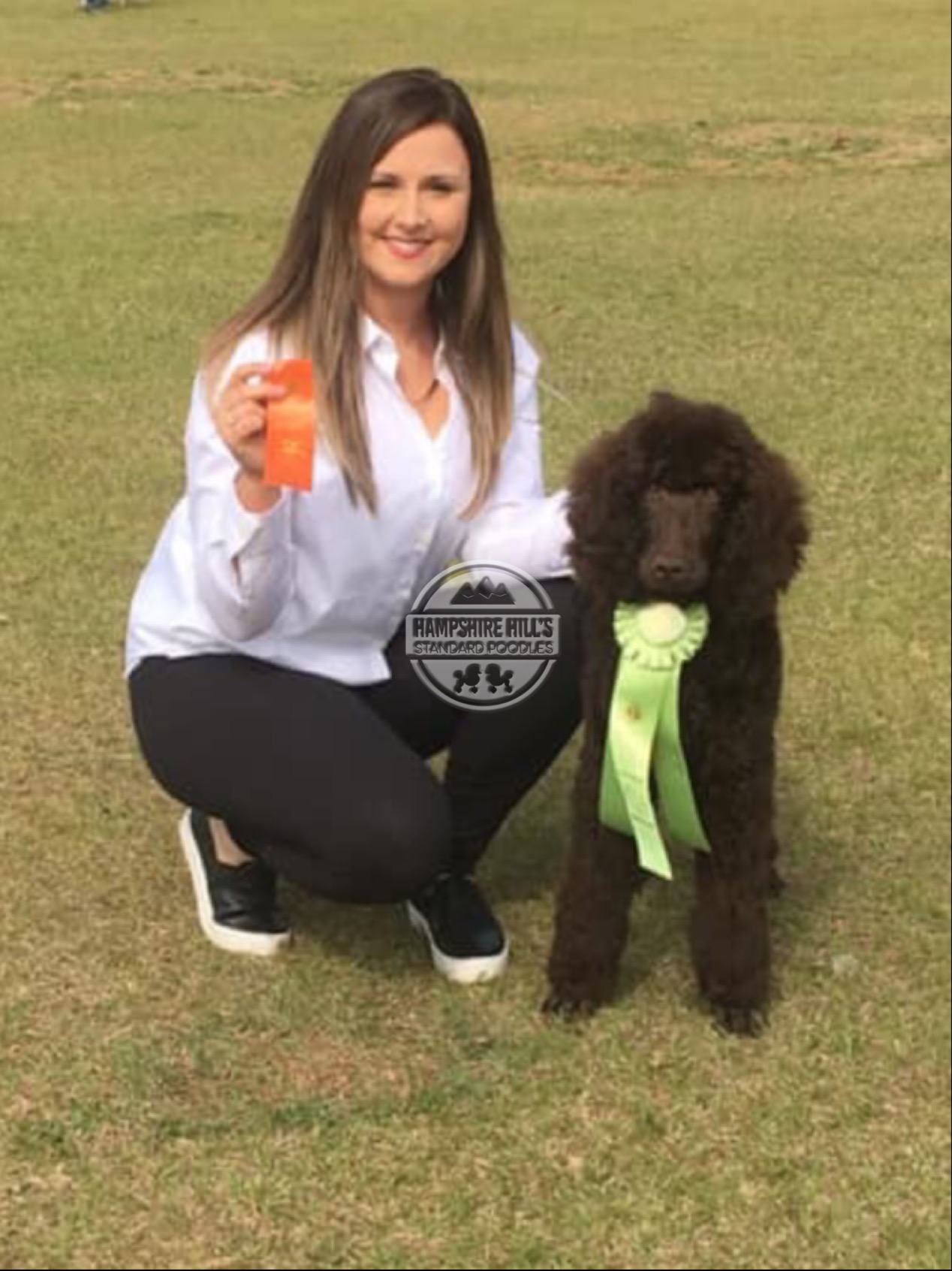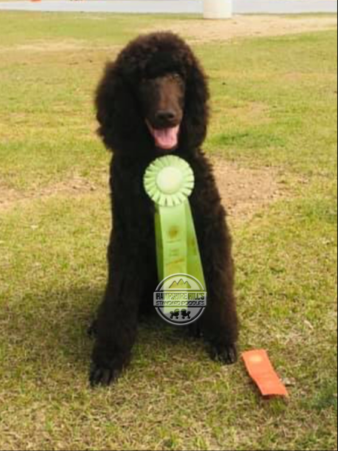 The wonderful boy comes directly from our lines. Hansel is genetic health tested clear through Paw Prints and Animal Genetics. Hansel competed in AKC puppy confirmation dog shows. He brought home his first best in show ribbon. Hansel will also go forward to be a certified Therapy dog. He has also earned his CGC titles. He is a sweet brown boy from a wonderful sire of our own. He will carry on his dads awesome temperament. We can’t wait to show you what this boy can do.
