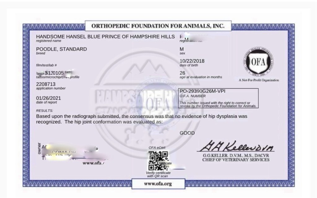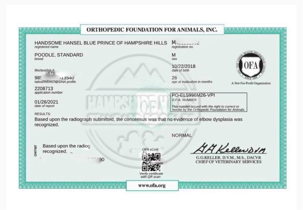 Handsome Hansel Blue Prince Of Hampshire Hills CGC, CGCC