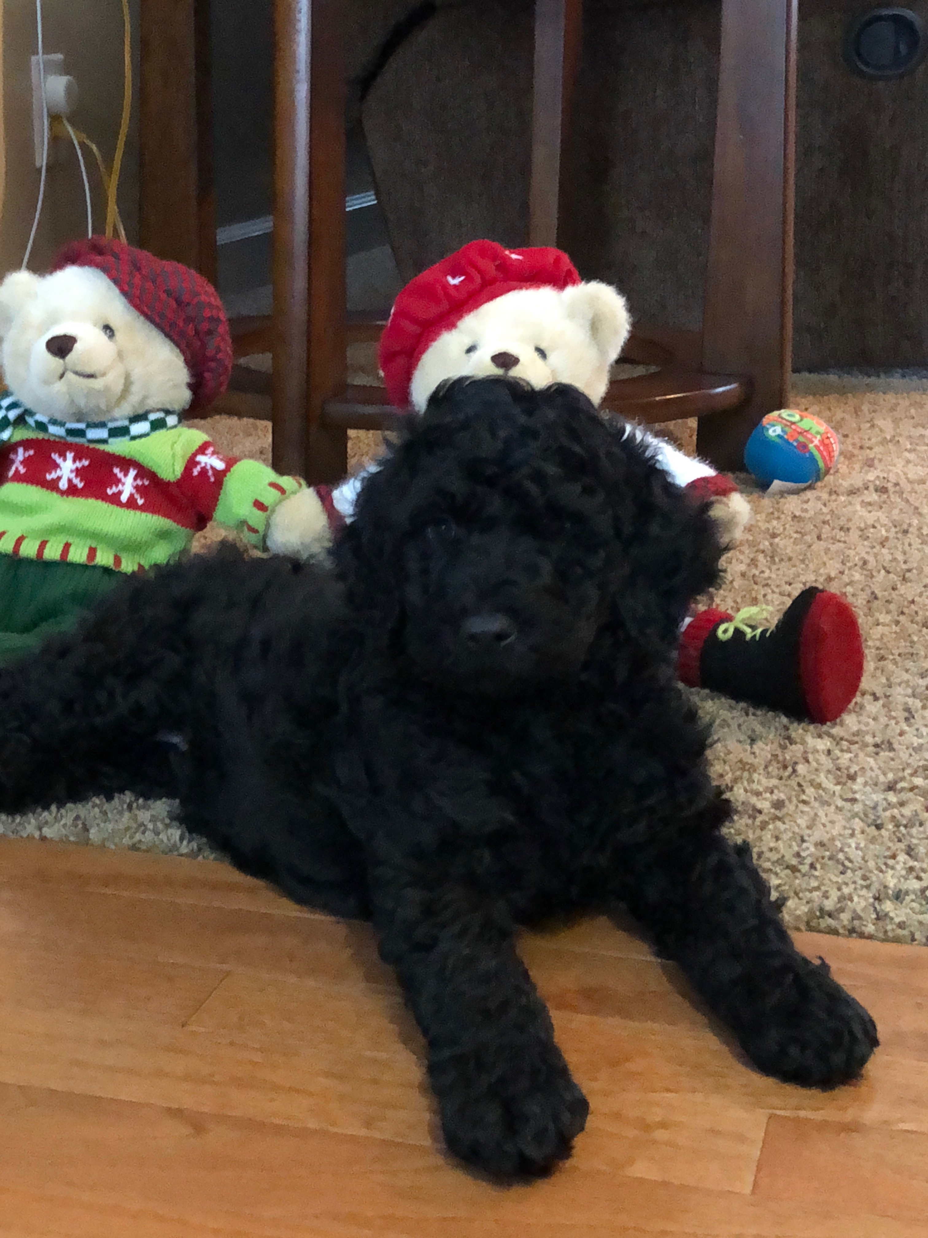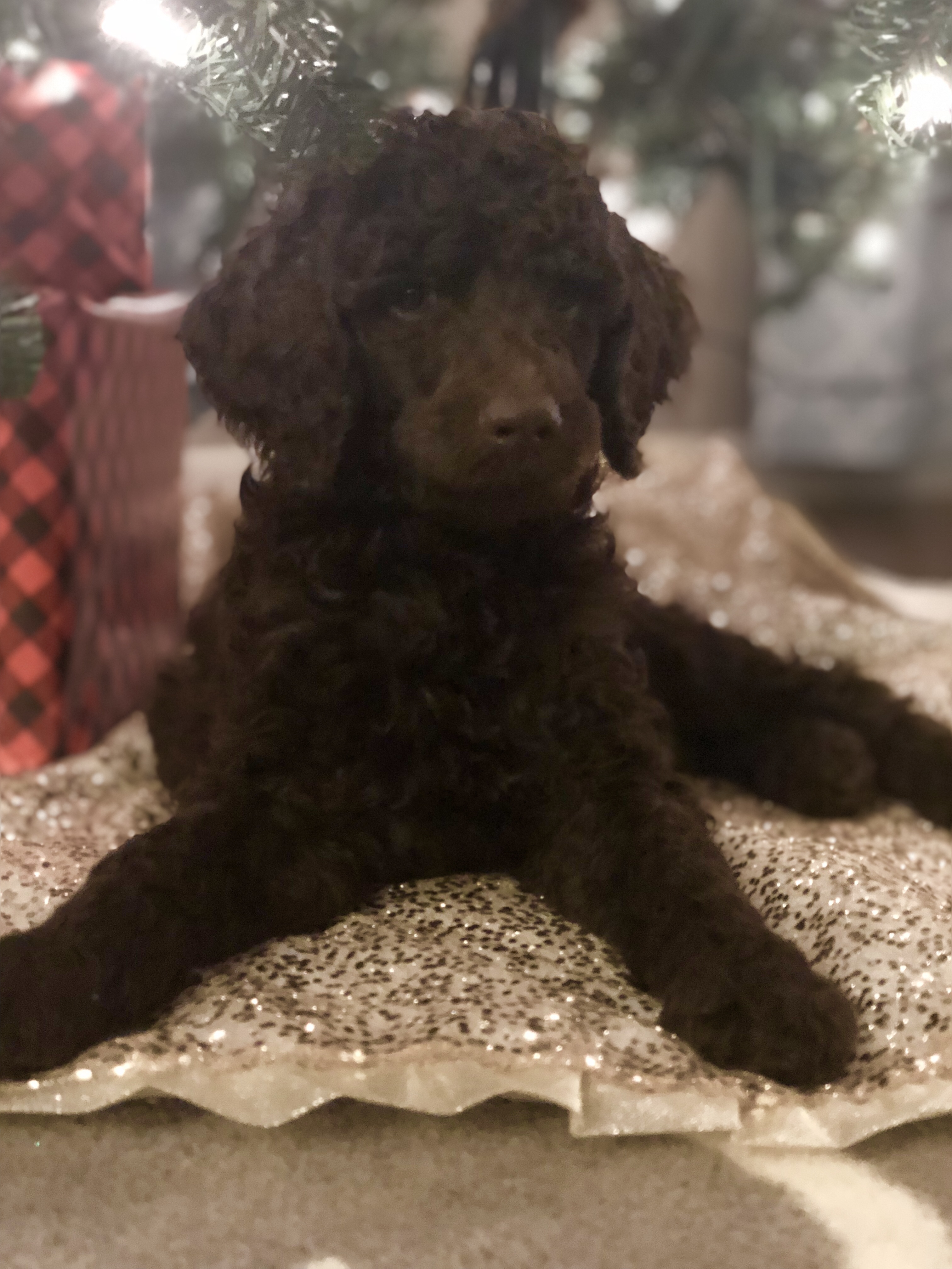 Our beautiful first litter of 7 chocolate and black standard poodle puppies. Sire “Hampshire Hill’s Black Baron” pair with and outside Dam 10/22/2017